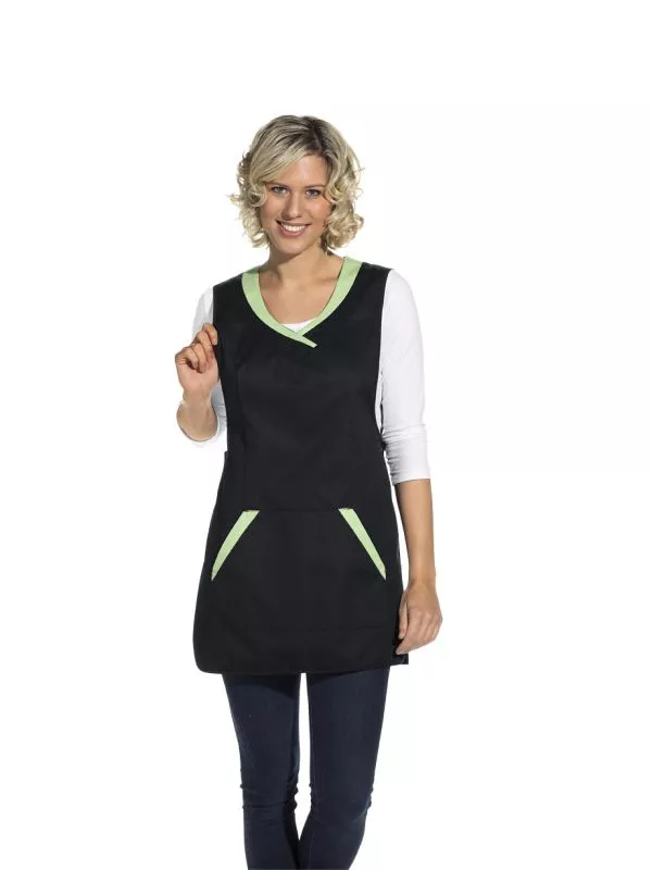 Überwurfschürze, schwarz/hellgrün, Chasuble,große Tasche vorne 0